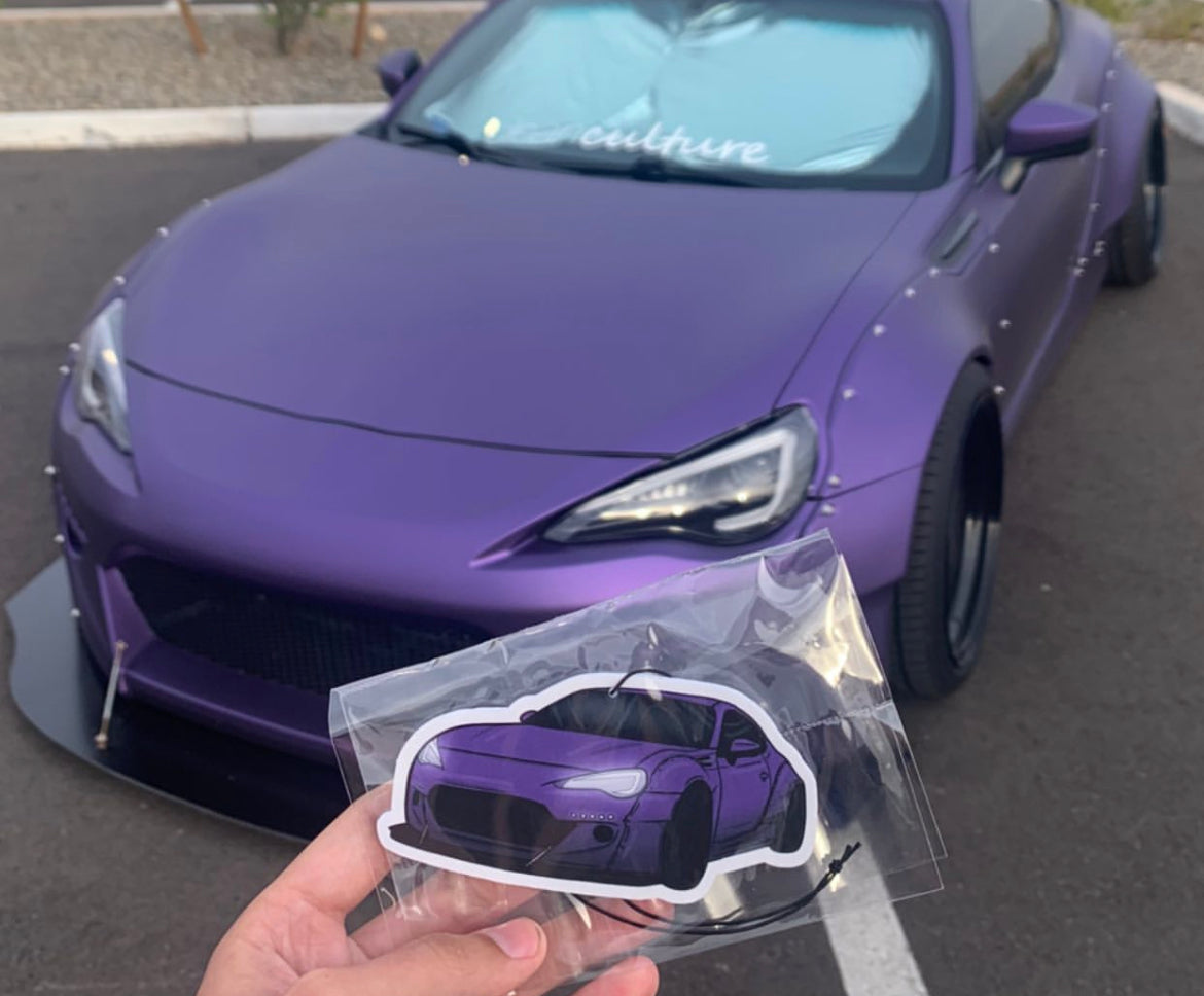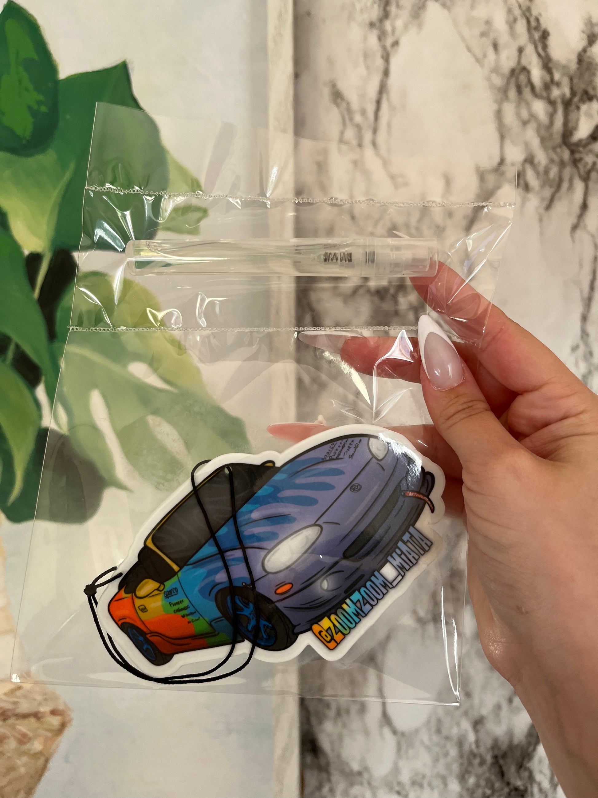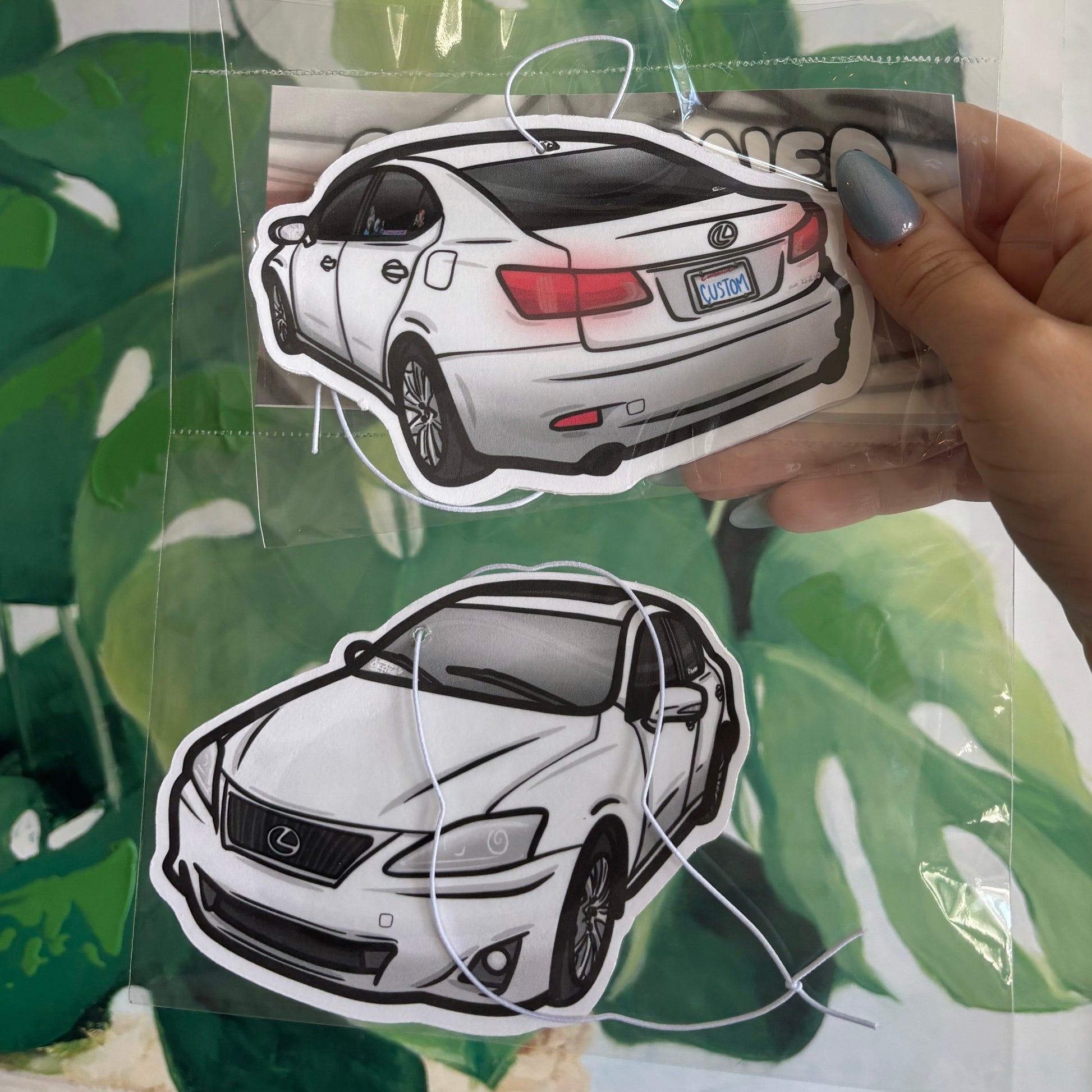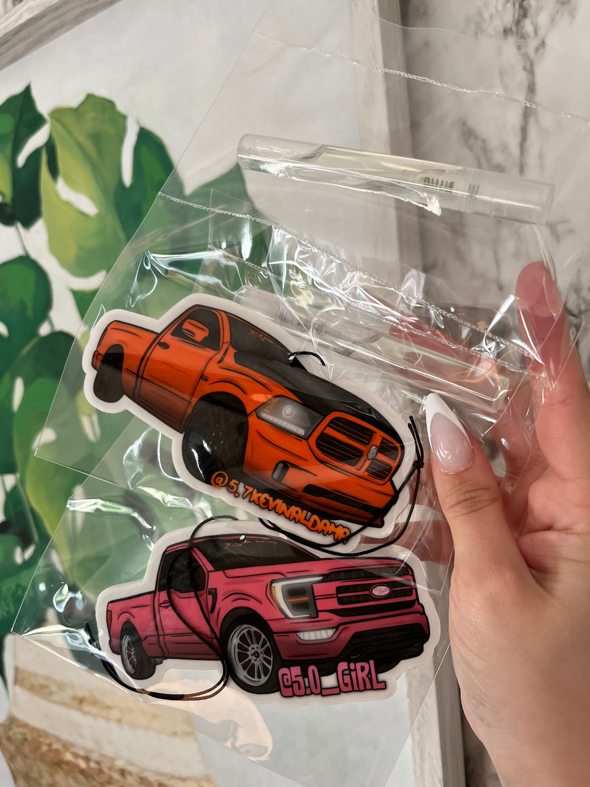 Text is reversed on backside. These are all hand drawn & handmade! Get your car, truck, rv or semi truck made into an air freshener! Super strong scent! Can easily be seen out of your windshield. You won't be disappointed!