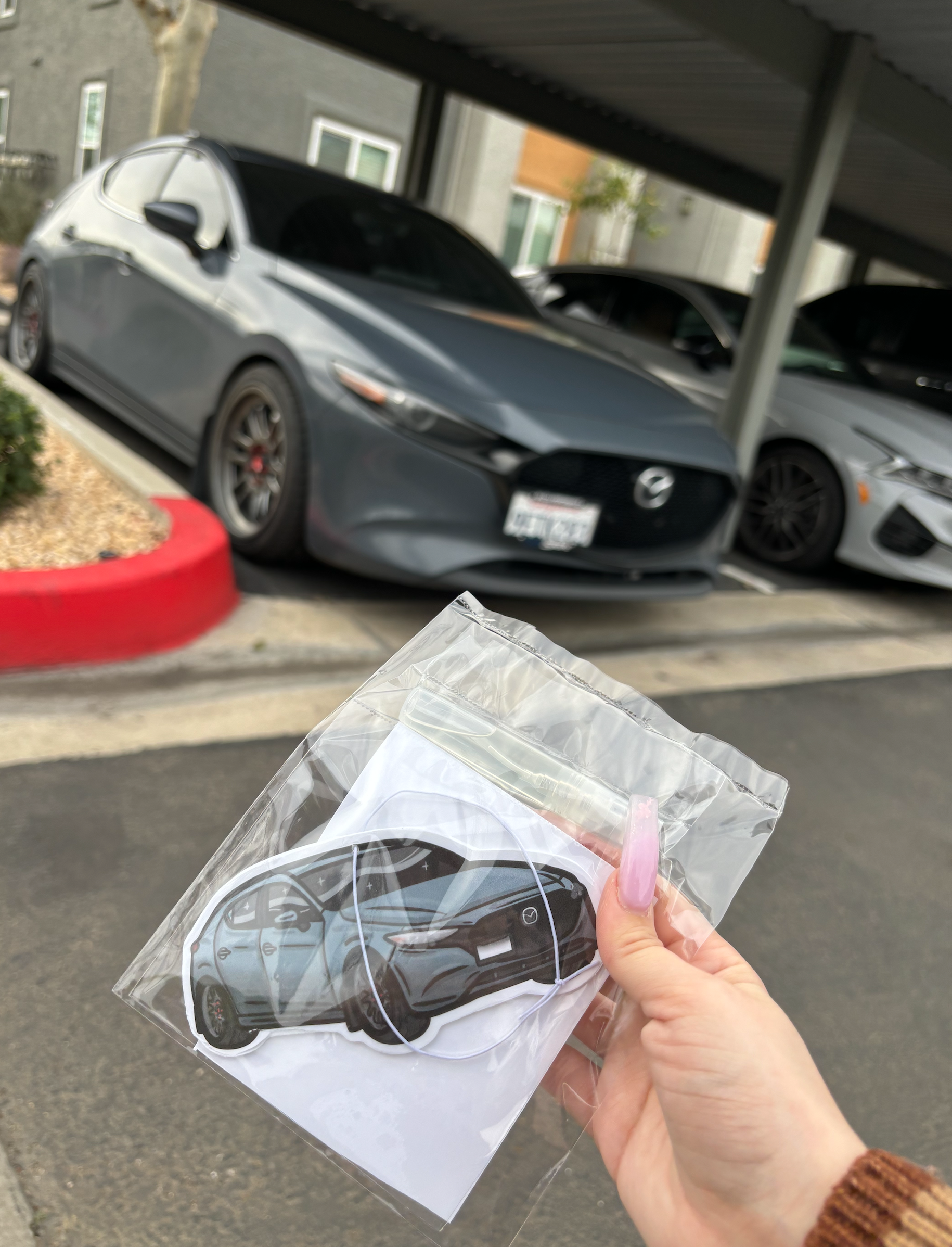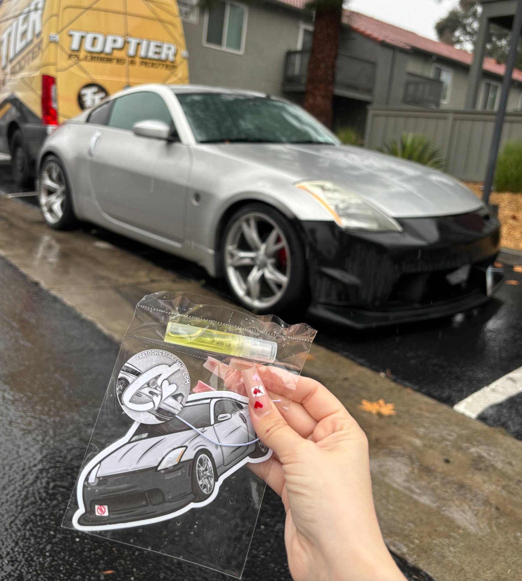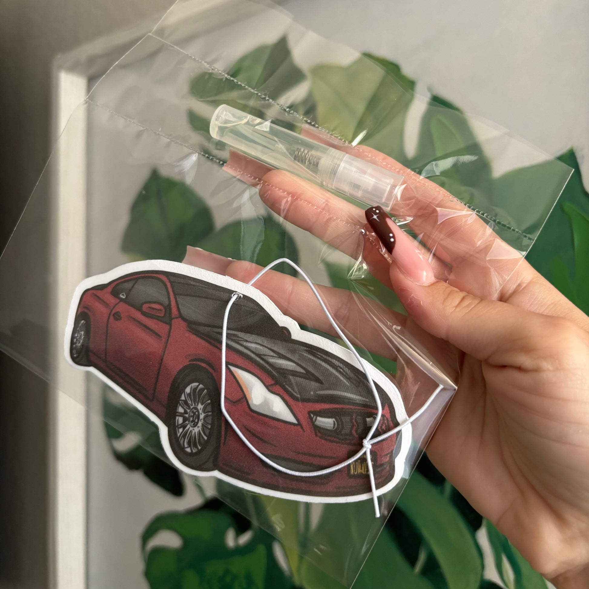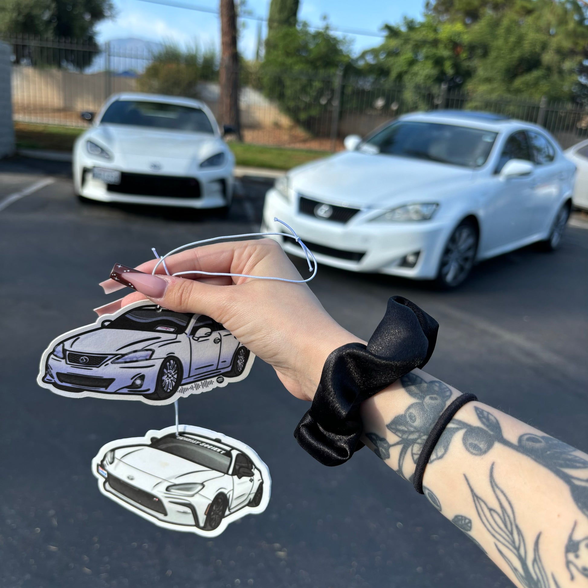 Text is reversed on backside. These are all hand drawn & handmade! Get your car, truck, rv or semi truck made into an air freshener! Super strong scent! Can easily be seen out of your windshield. You won't be disappointed!